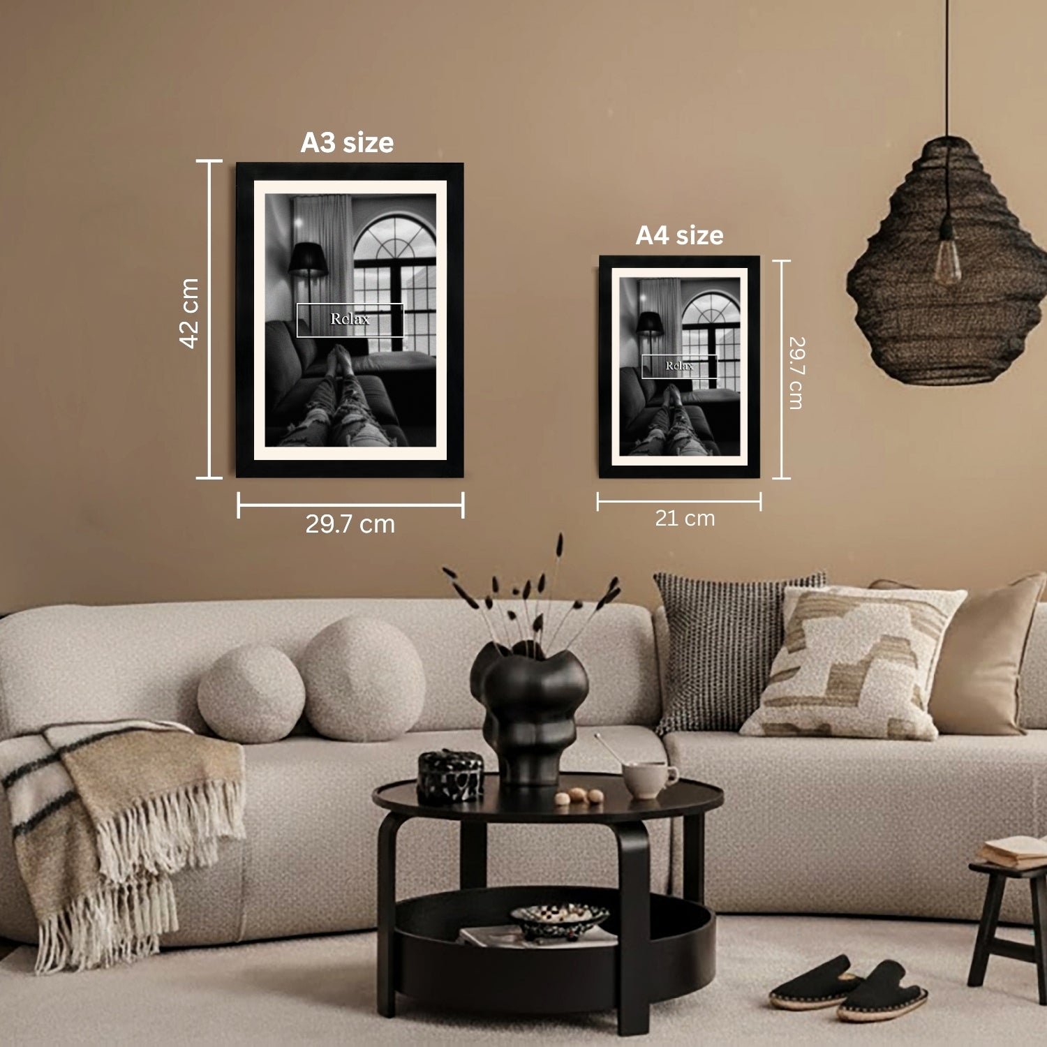 MD Art Collections - Monochrome Aesthetic Wall Art A4/A3 PVC Black/Mahogany Wood Frame