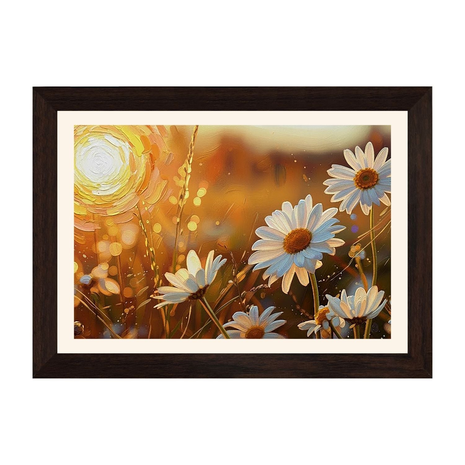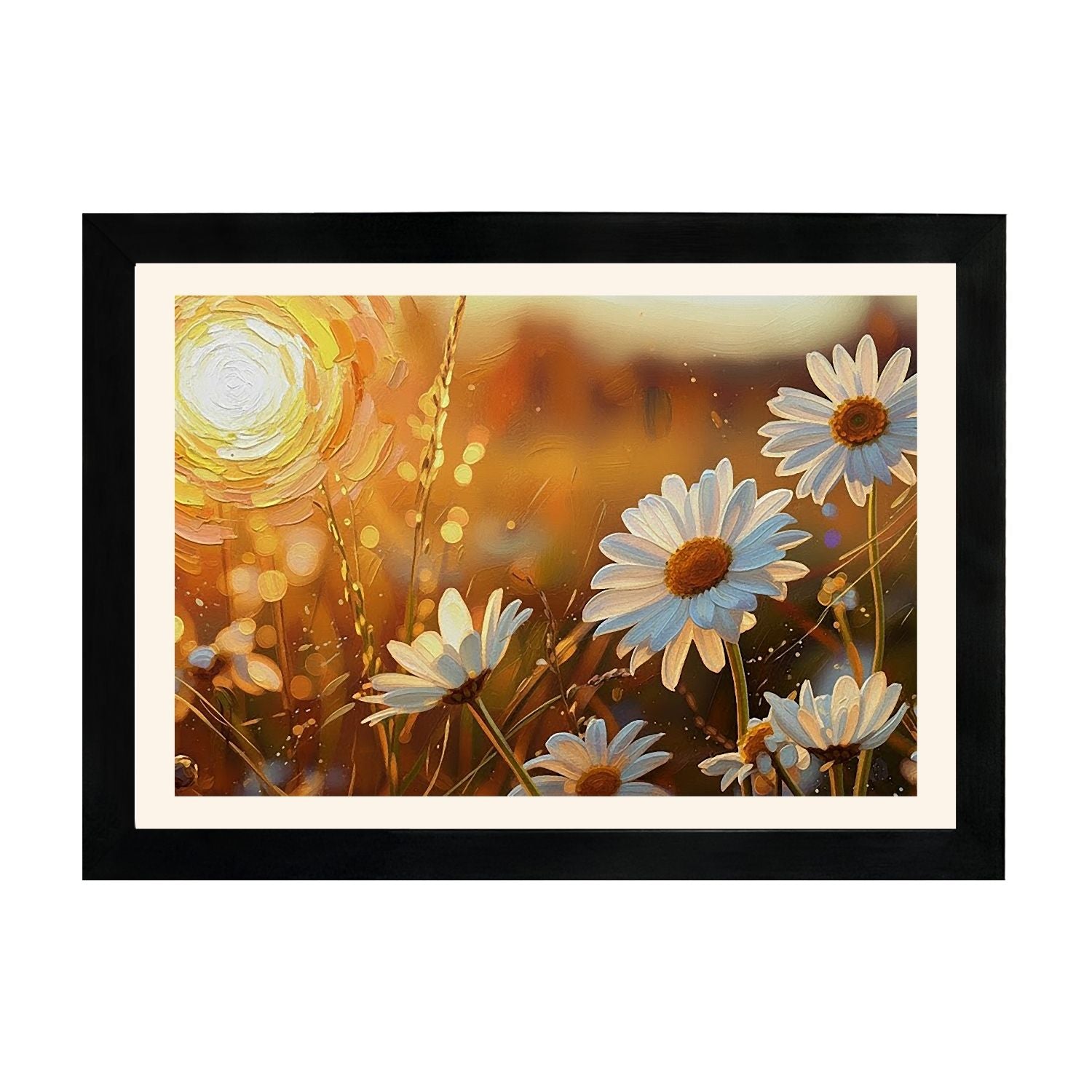 MD Art Collections – Nature Abstract Wall Art | Blue Tree, Lake, White Daisy, White Flower & Red Birch Tree – A3/A4 with Black or Mahogany Wood Frame