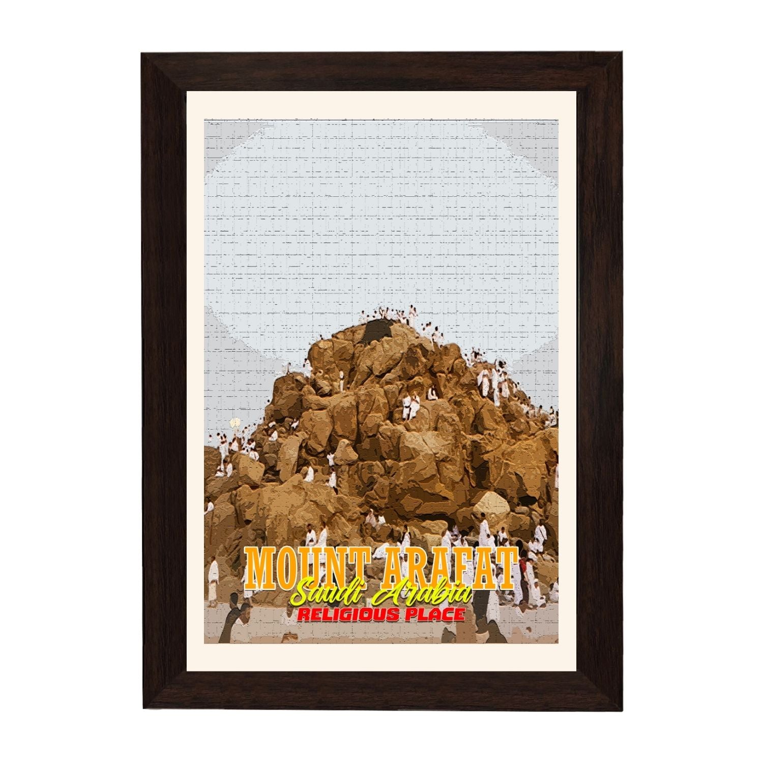 MD Art Collections | Religious Places of Saudi Arabia Wall Art – Mecca, The Grand Mosque, Mount Arafat, Jabal al-Nour, Medina & Diriyah | A4/A3 with Black or Mahogany Wood PVC Frame
