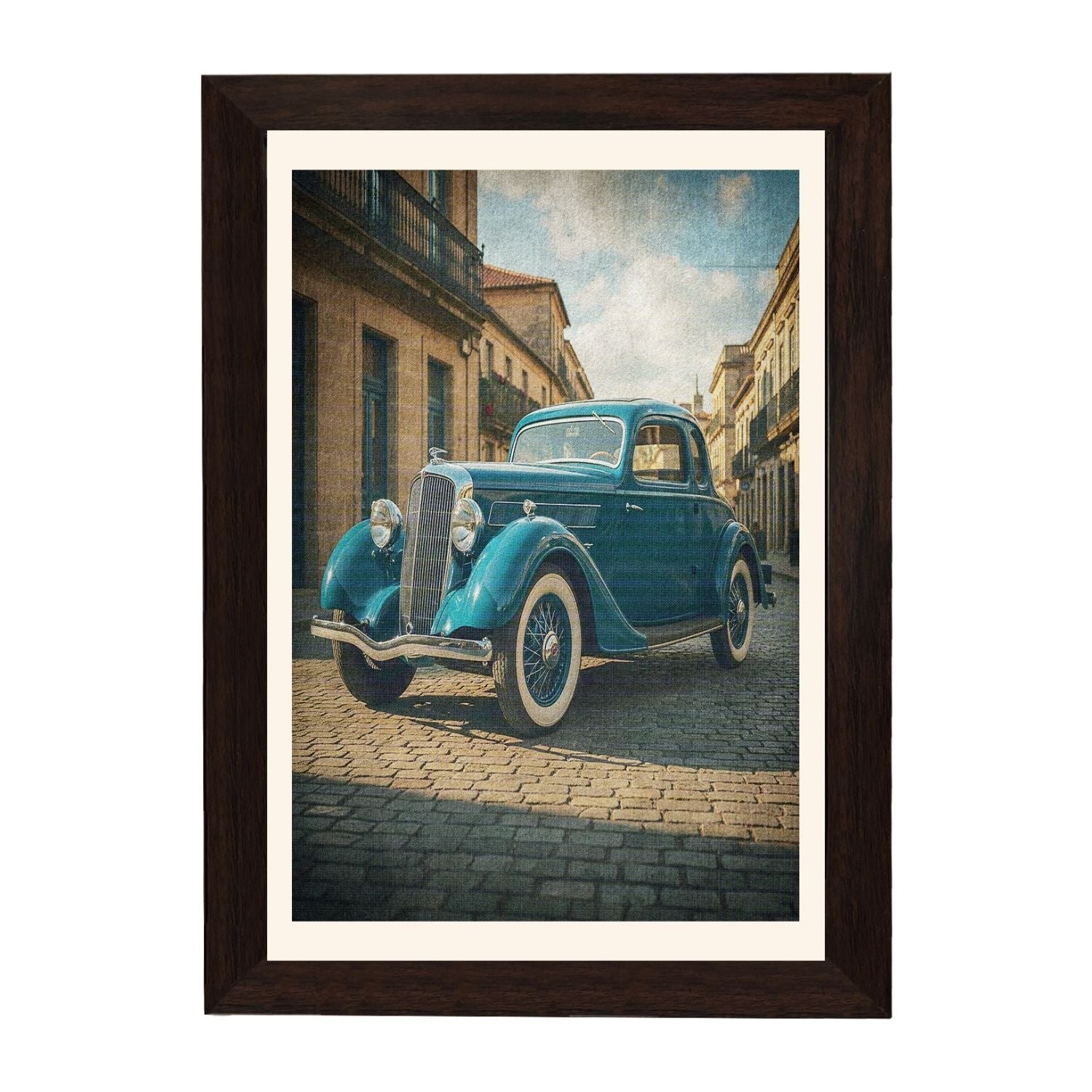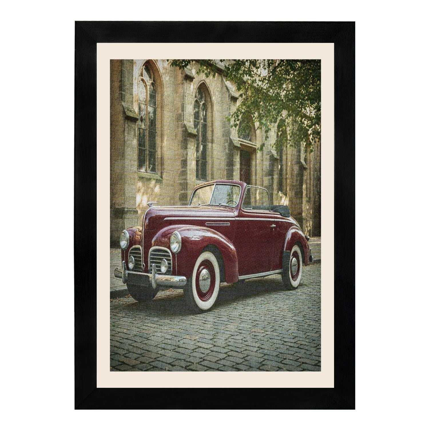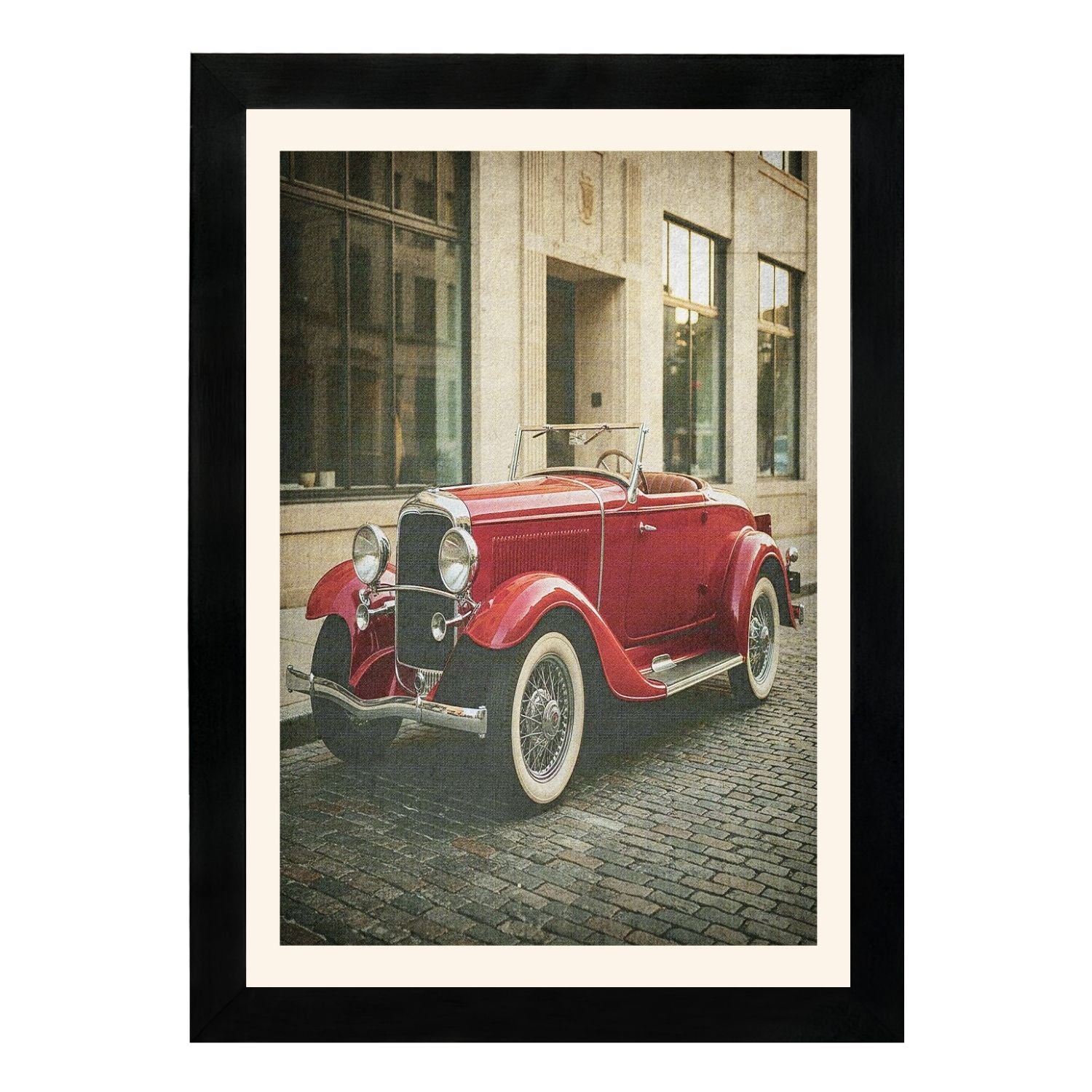 MD Art Collections - Vintage Cars Wall Art – Red, Black & Yellow, Blue, Black, Maroon Classic Car Prints | A4/A3 | PVC Black or Mahogany Wood Frame